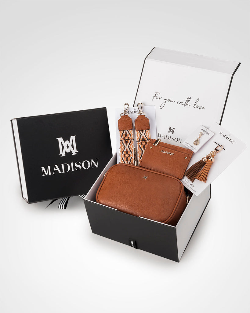 Monica 5 Piece Giftbox - Crossbody Bag, Aztec Bag Strap, Cardholder, Keychain & Personalisation Charm
