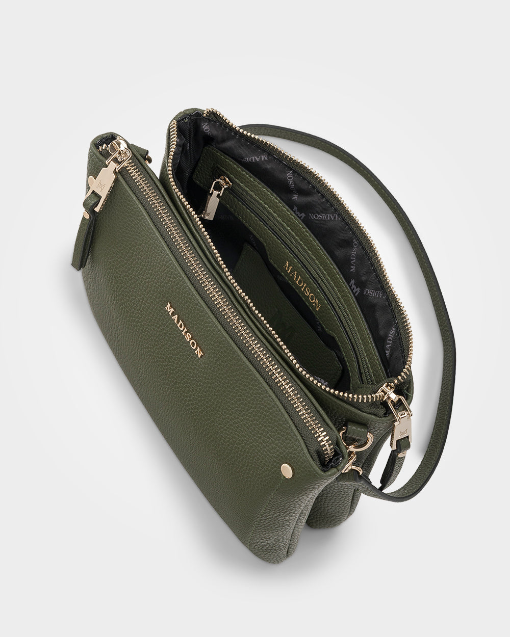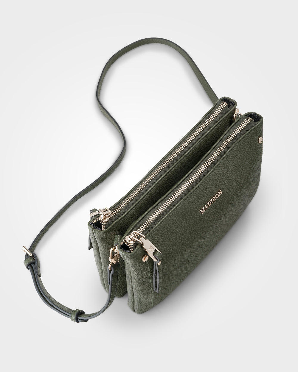 Our Madison Charlotte is a perfect on-the-go crossbody bag. Its double zip opening and 2 compartments allows easy organisation. With additional rear and internal zips, there will be the ideal location for all your essentials. Made from premium vegan leather, certified by Vegan Australia this crossbody is not only cruelty free, but durable and made to last.