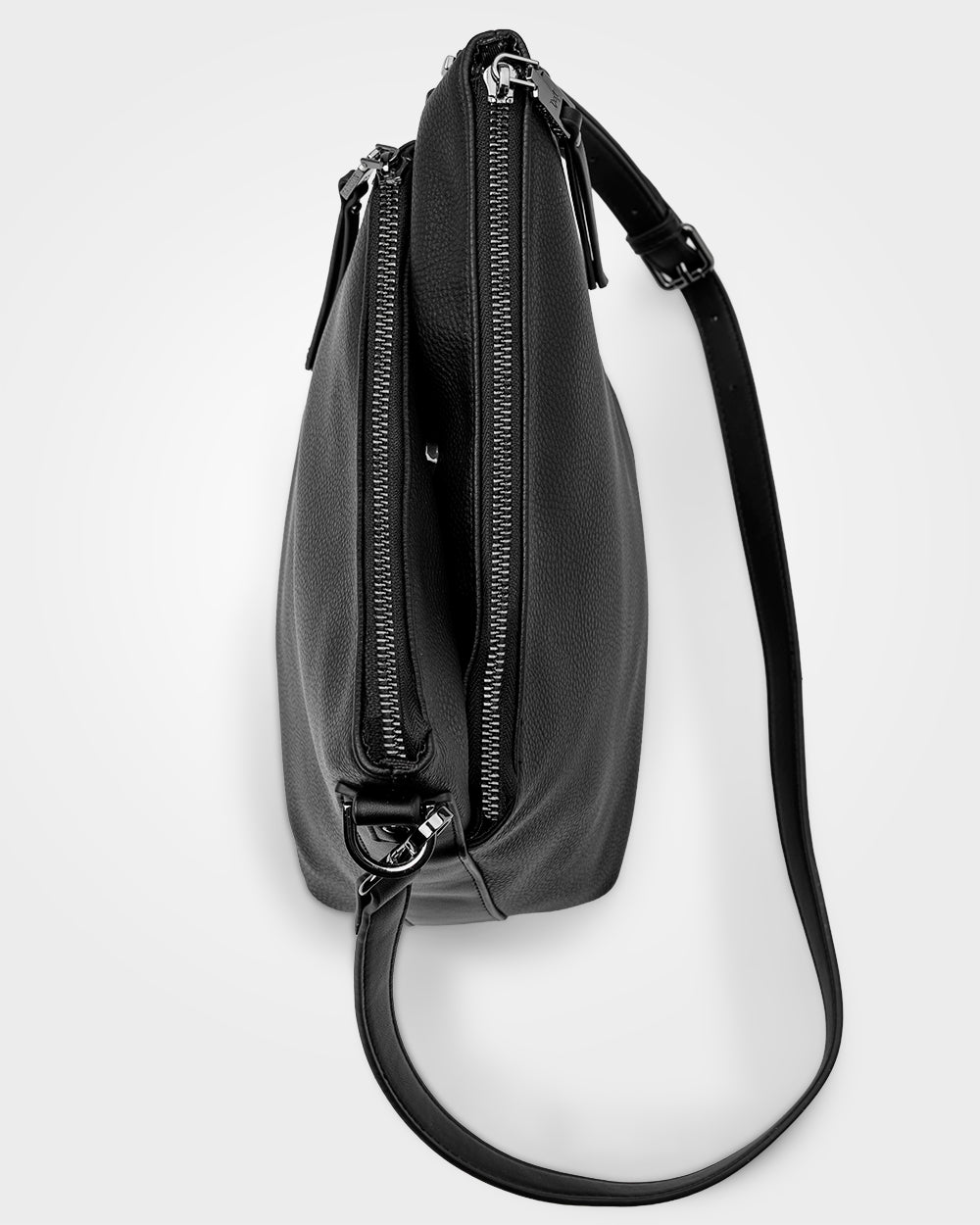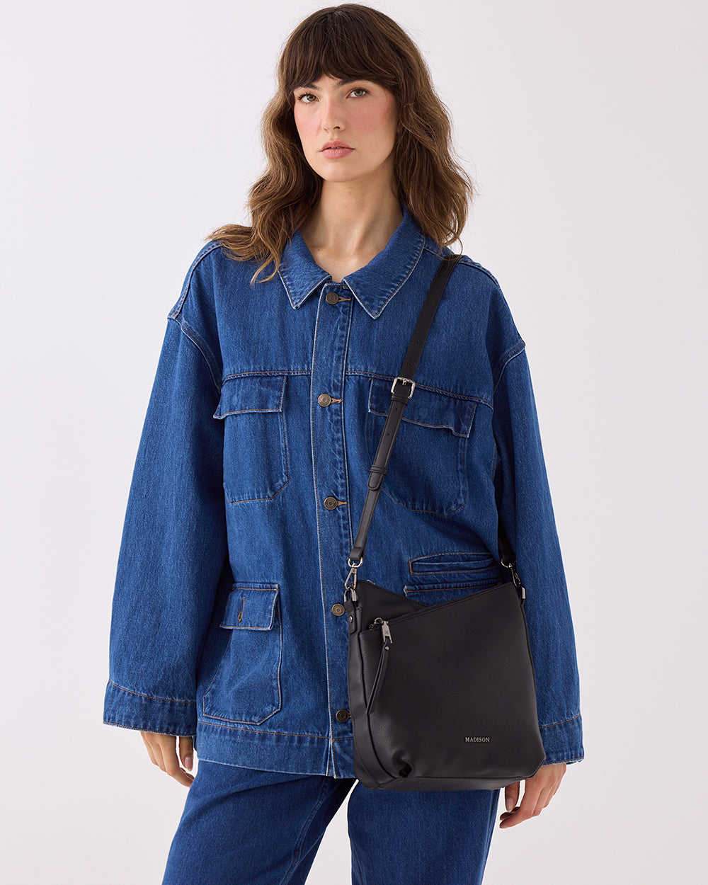 Our Maya crossbody bag features dual angled zip top opening and medium size. With 3 compartments there will be a perfect spot for all your essentials. The centre section is secured with a magnetic snap closer and inside zip pocket, card slot and phone pocket.