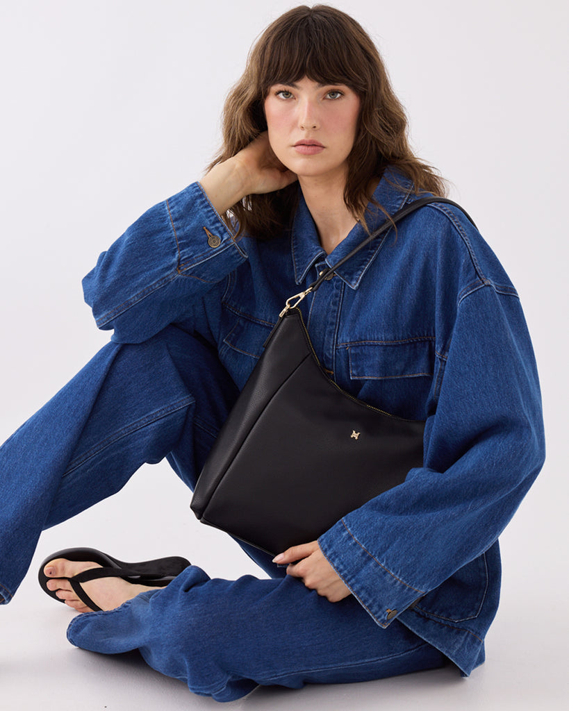 Our Raquel shoulder bag is a relaxed soft style which is comfortable to wear with its padded strap detail. Its generous size is ideal for carrying many items for a busy day out. A convenient zip pocket on the outside is ideal for your phone and keys. Made from vegan leather, this is an effortless bag to use every day.