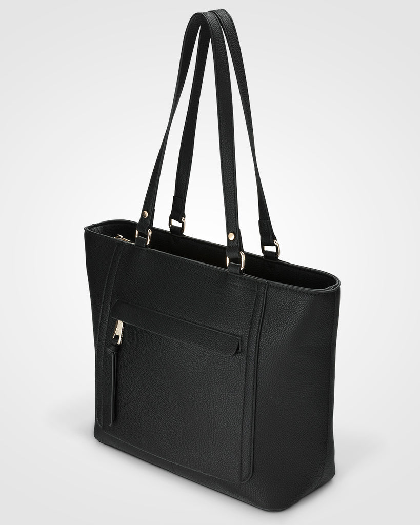 Our Roxanne Tote is a polished staple to take you from work to weekend. Its medium size sits neatly under your shoulder. Featuring a secure zip top closure, convenient zip front pocket and spacious interior it is a timeless silhouette for everyday style.