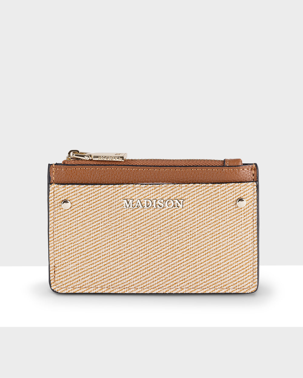If you are ready to downsize from a wallet to something smaller, this card case is ideal to hold essential cards and cash. Perfect to fit inside your favourite crossbody bag and not take up too much space, this Vanessa card holder will ensure you are never left stranded with no way to pay! Featured in a unique wipe-clean, embossed canvas look material, this natural and tan combination is the perfect summer accessory update.